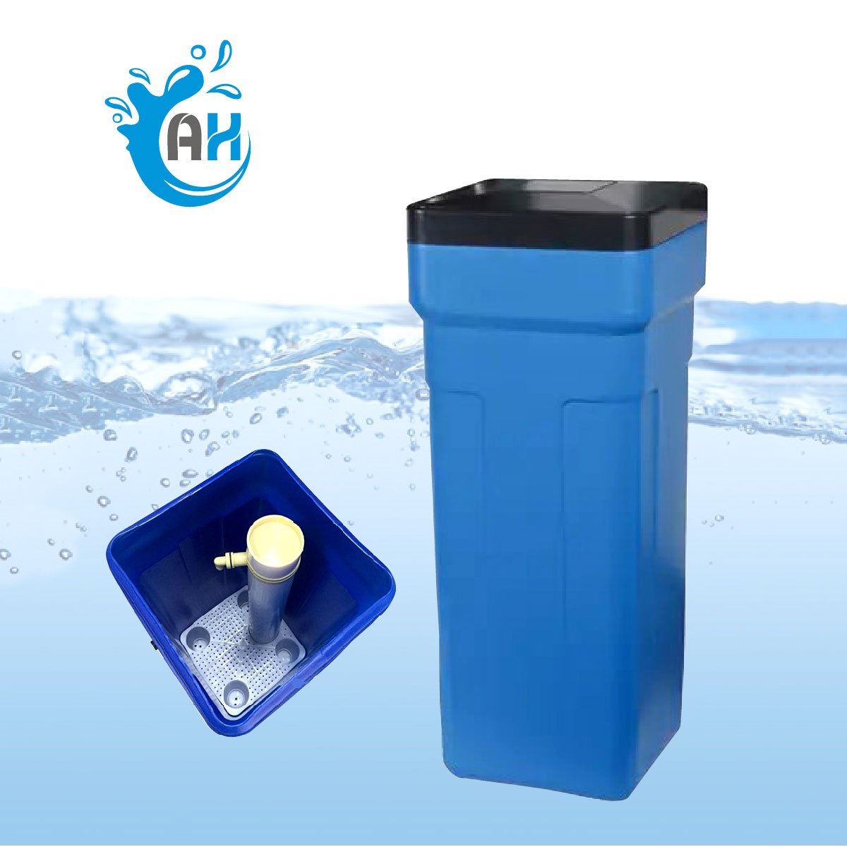 - Tanques para salmuera, utilizados para la regeneración de la resina en los sistemas de suavización
